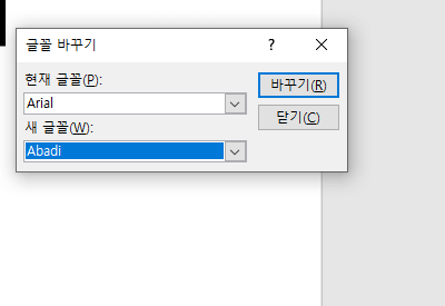 아래 그림과 같이 글꼴 바꾸기 팝업창이 뜨는데요.