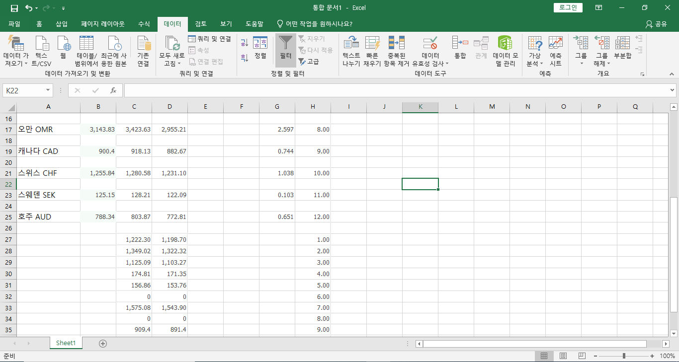 예제로 환율관련 자료를 편집해보겠습니다.