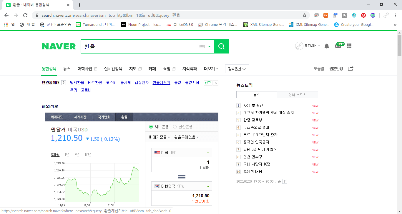 실습을 해보기 위해서 네이버에서 환율을 검색해보겠습니다.