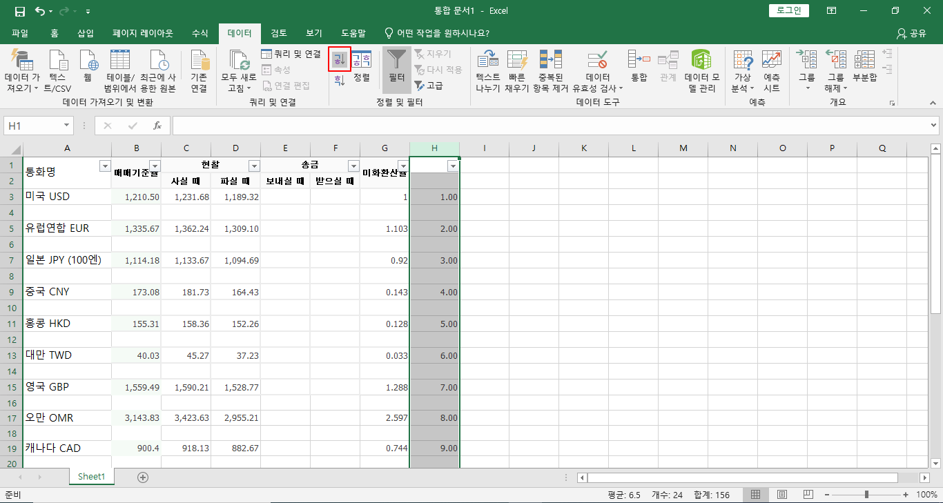 그리고 매매기준율에서 필터를 눌러줍니다.