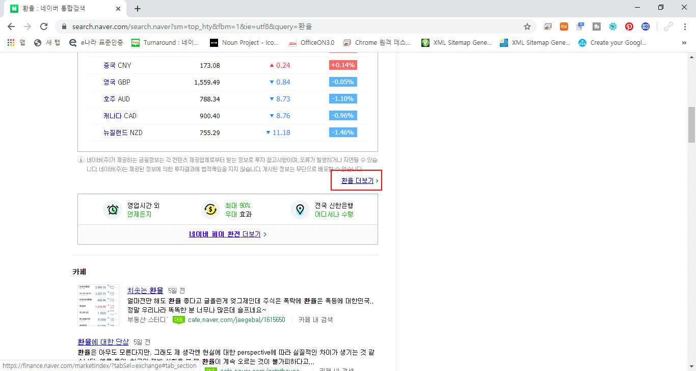 검색결과의 아랫쪽으로 이동하면 환율 더보기가 있습니다.