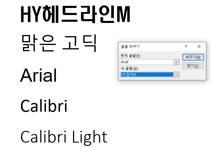 현재 글꼴에서 변경 대상 글꼴을 선택합니다.