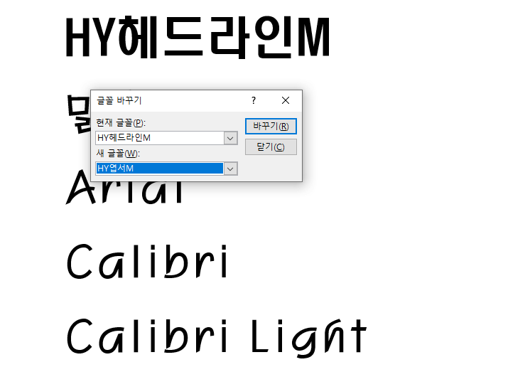 아래 그림과 같이 글꼴 바꾸기 팝업창이 뜨는데요.