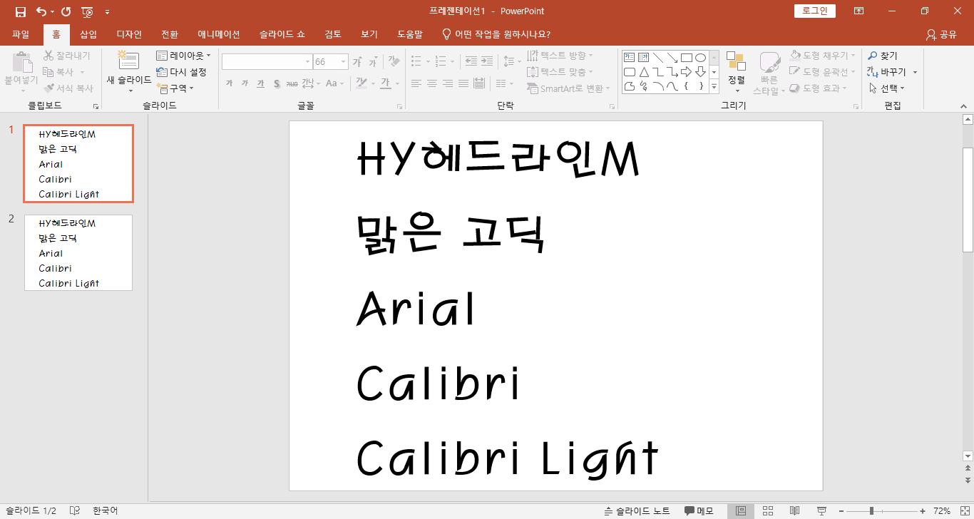 그중에서는 프리젠테이션에 쓰이는 컴퓨터에 설치되지 않은 폰트도 있을 겁니다.